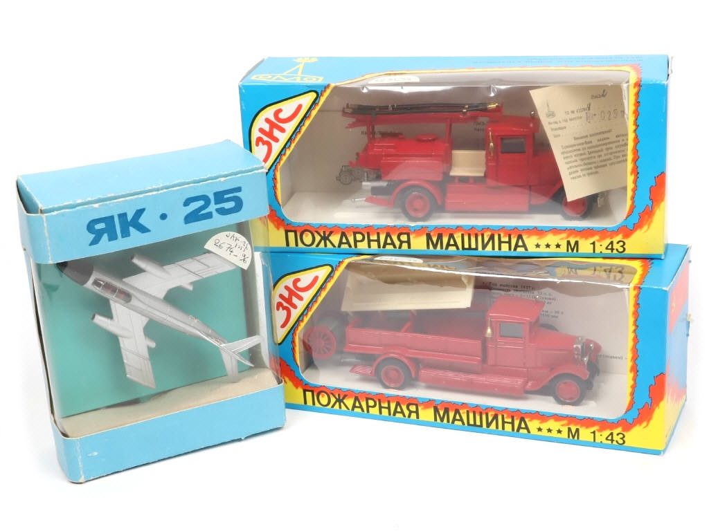 comprend : camions de pompiers & avion de chasse YAK 3 - quelques accrocs sur les boites - possibilité de petits manques