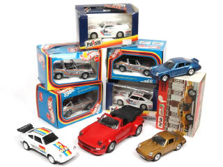 différentes grandes échelles - un modèle repeint avec moteur non testé (fil manquant) & un autre avec moteur à friction - on y retrouve notamment les marques : MATTEL & POLISTIL - boites en états 'b' & 'c' (2 modèles sans)