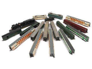 non testé - comprend notamment les modèles : motrice BB 9201, BB 17029, locomotive 020 & voitures-voyageurs - on y retrouve notamment les marques : JOUEF & LIMA - plus ou moins encrassées - quelques manques, parties cassées & quelques petites traces d'oxydation sur certains exemplaires