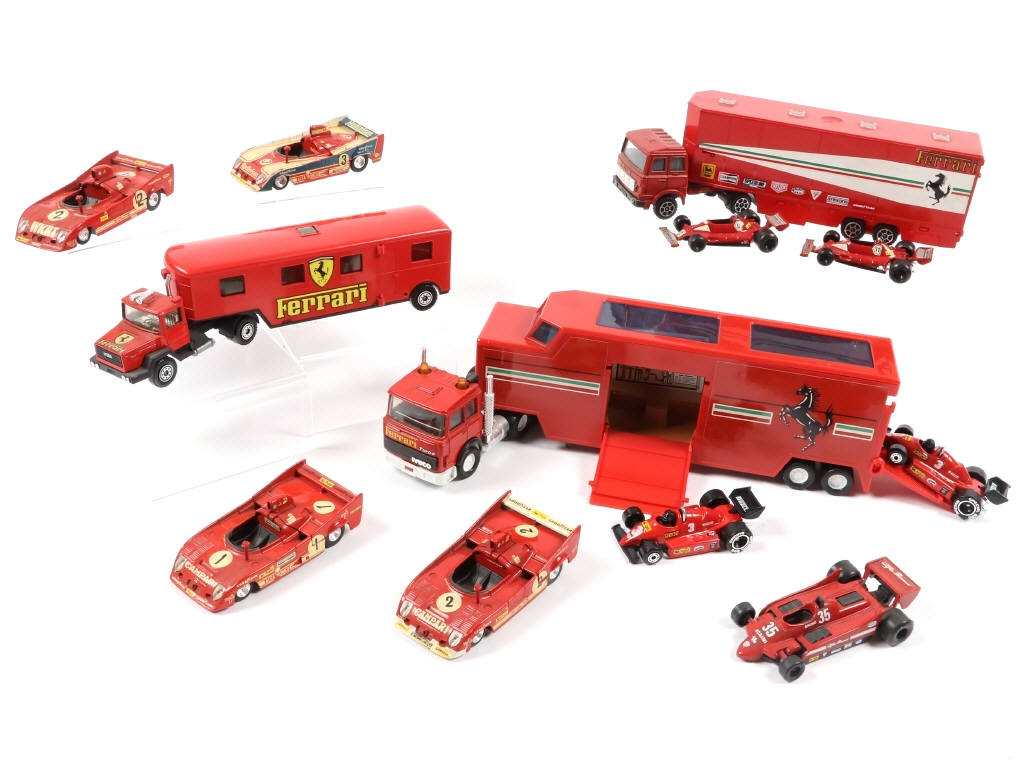 on y retrouve notamment les marques : POLISTIL, SOLIDO, MATCHBOX & YAXON - comprend notamment les modèles : Camions transport F1 & FERRARI formule 1 - possibilité de petits manques & parties cassées