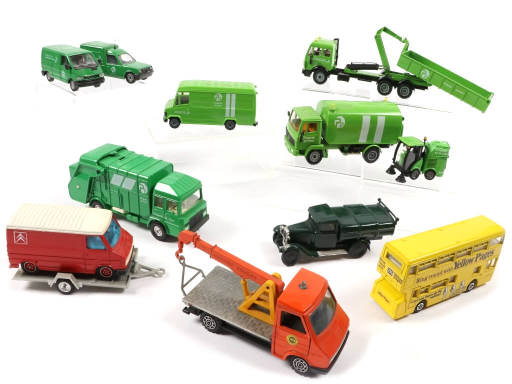 on y retrouve notamment les marques : CORGI, SIKU, SOLIDO, DINKY TOYS & MERCURY - comprend notamment les modèles : RENAULT & MERCEDES - possibilité de petits manques & parties cassées