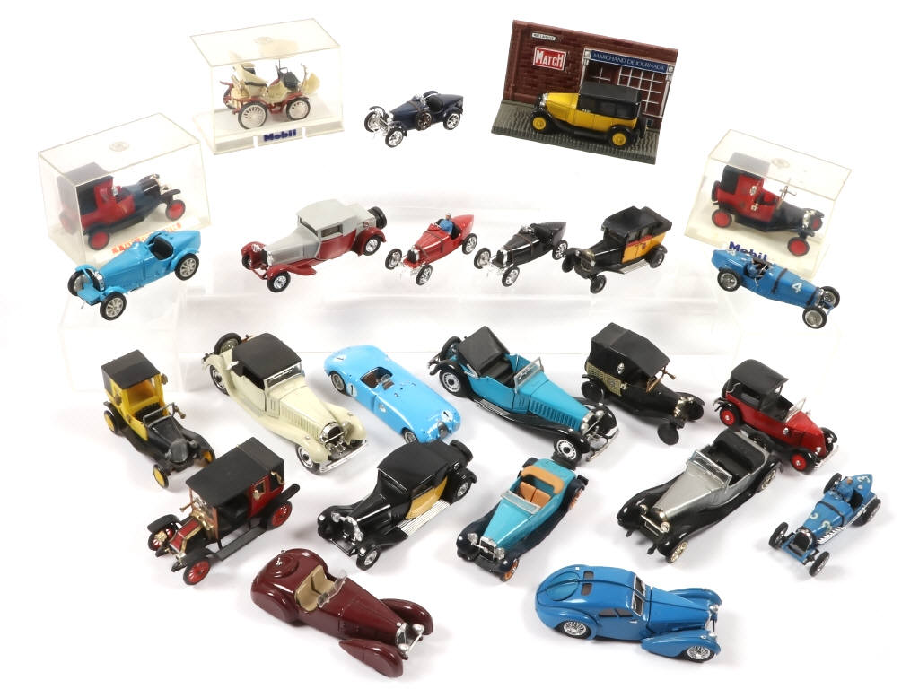 on y retrouve notamment les marques : CORGI, MATCHBOX, BRUMM, RIO, SAFIR, ELIGOR & RAMI - comprend notamment les modèles : BUGATTI & CITROËN - trois modèles en boites (état 'b') - on y joint un diorama - possibilité de petits manques & parties cassées