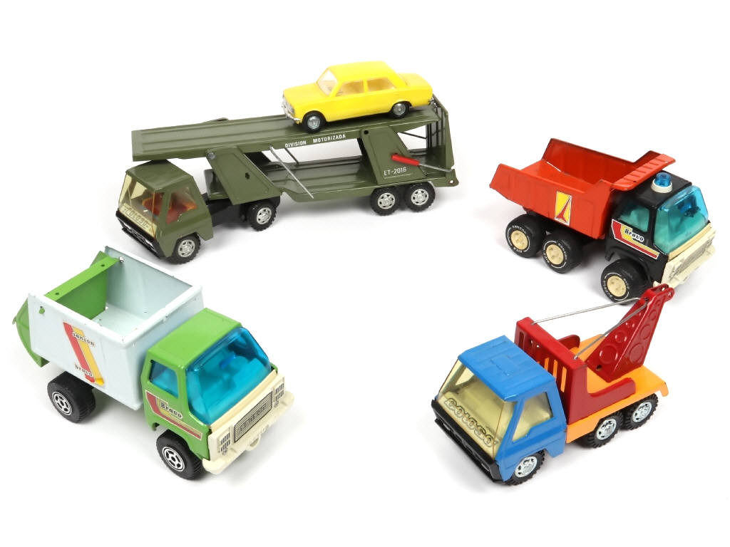 comprend notamment : camions GOLOSO, SAMSON & SEAT 124 - on y retrouve les marques : GOZAN & RICO - quelques manques & parties cassées - petites traces d'oxydation sur certains modèles