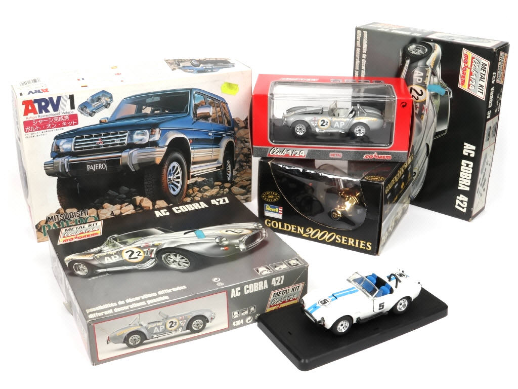 différentes grandes échelles - 2 maquettes montées & une autre à monter - comprend notamment les modèles : AC COBRA, MITSUBISHI & MESSERSCHMITT - on y retrouve les marques : REVELL, MAJORETTE & FUJIMI