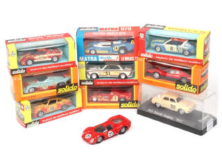 miniatures reproduisant les modèles : RENAULT (DAUPHINE, 17), BMW 3000, FERRARI (BB, 330 P3, modèle monté & peint), ALFA ROMEO 33TT12, LANCIA STRATOS, MATRA 670, PORSCHE CARRERA RS & GULF Le Mans - les boîtes sont en états de 'b' & 'c'