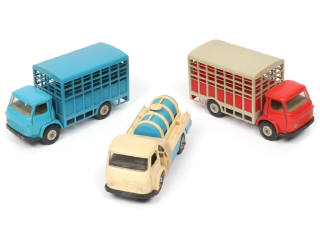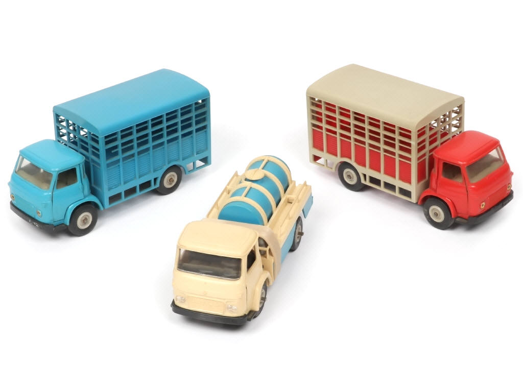 comprend les modèles : S5C bétaillère (2 exemplaires dont un avec une rambarde cassée & incomplète, portières plus ou moins déformées) & GS4 citerne laitier - ensemble plus ou moins encrassé
