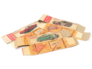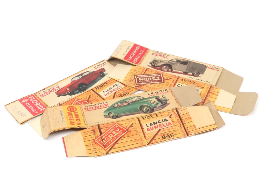 se rapportent aux modèles suivants : CITROËN 2CV commerciale (traces de rubans adhésifs à l'intérieur, état 'b' avec une petite déchirure), RENAULT FLORIDE (état 'a') & LANCIA AURELIA (état 'c', manque une languette d'un rabat)