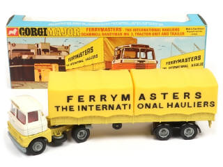 CORGI TOYS (GB) 1147 SCAMMELL HANDYMAN Semi-remorque bâché 'FERRYMASTERS THE INTERNATIONAL HAULIERS' jaune citron & blanc