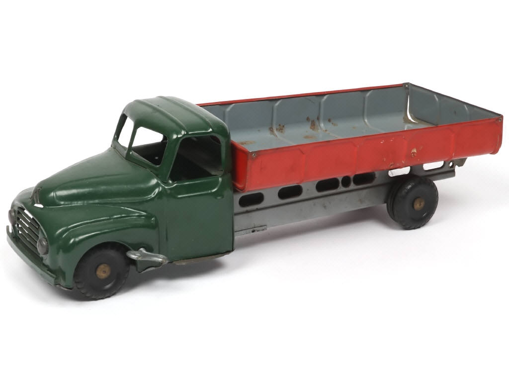 longueur : 35 cm - moteur à clef (fonctionne, avec clef) - sigle de capot-moteur & optiques de phares ternis - taches avec traces d'oxydation sur la benne - sans bâche