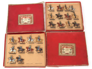demi-ronde bosse - dimensions des coffrets : 21x18,5 cm - états de 'B' à 'D' - hauteur des figurines : 4,5 cm - ensembles présentés sur socles cartonnés - comprend les coffrets : italiens & Hussards (incomplet pour ce dernier) - avec manques & parties cassées (plus ou moins importants suivants les exemplaires)