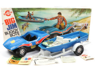 année 1975 - traces d'usures sur le capot, phares cassés dont un manquant - barque avec importante fissure à l'arrière & plastique jauni par endroit - avec accessoires, notice, fiche de contrôle qualité, catalogue CONGOST & BIG JIM - avec manques & parties cassées