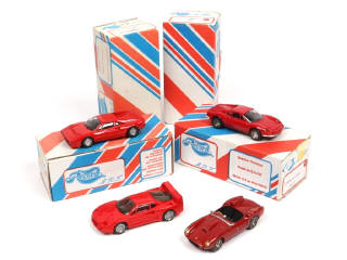 comprend les modèles : GTO 1984, DINO 246 GT, f40 1987 & 412 MI (traces de mousse séchée sur la carrosserie avec réaction) - quelques accessoires sous sachet & d'autres manquants - boites en état 'b' avec annotations & étiquettes collées