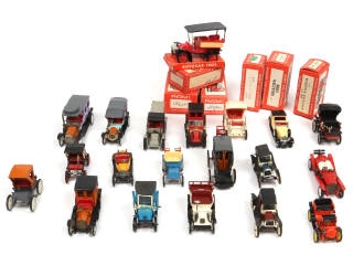 on y retrouve notamment les marques : J.M.K & MINIALUXE - avec manques & parties cassées - on y joint 3 boites vides de la marque J.M.K des modèles : BRAZIER, DEDION BOUTON & DELAHAYE en état 'b'