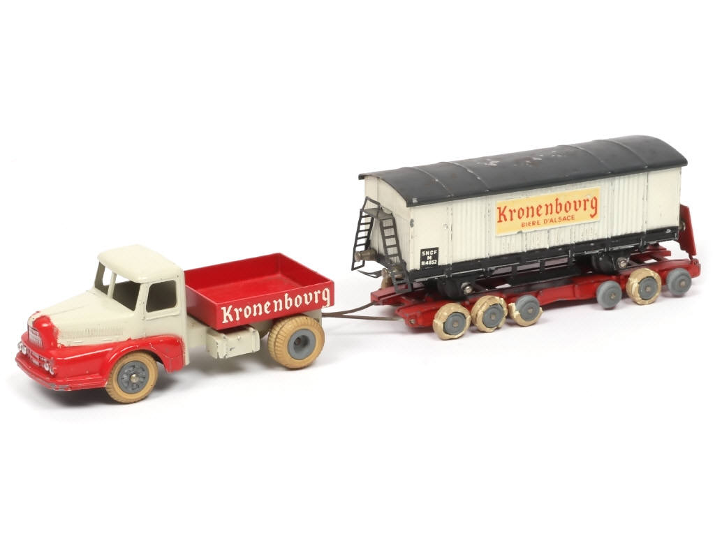 JRD (FRANCE) 123 UNIC avec remorque rail-route 'KRONENBOURG' blanc cassé & rouge