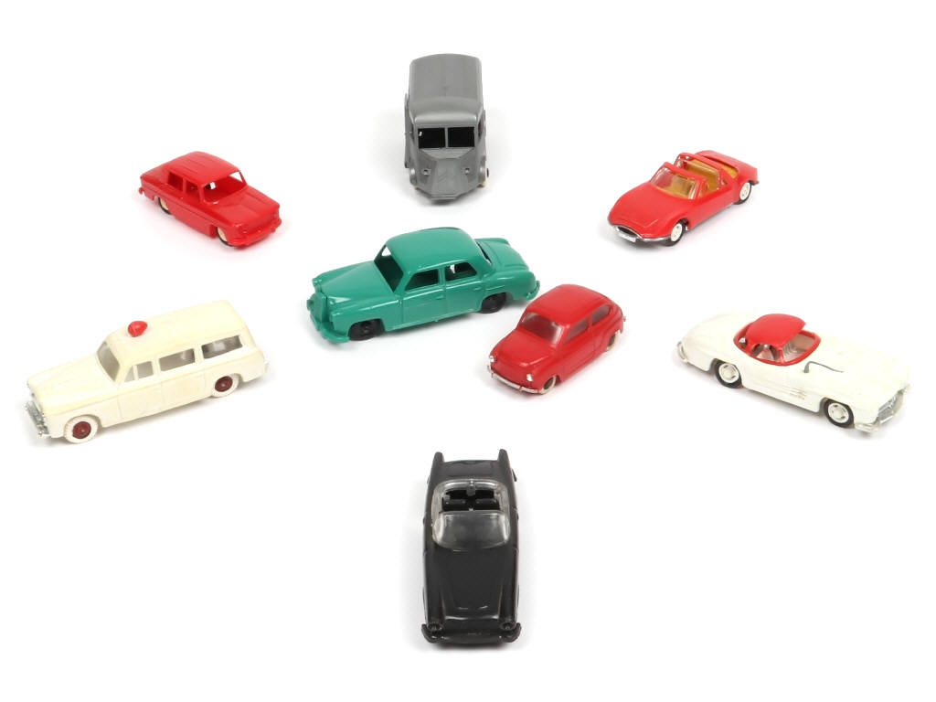 3 modèles avec marquage 'BONUX' & un autre avec marquage 'LEVER' - 2 carrosseries plus ou moins décolorées - 6 modèles avec manques & parties cassées