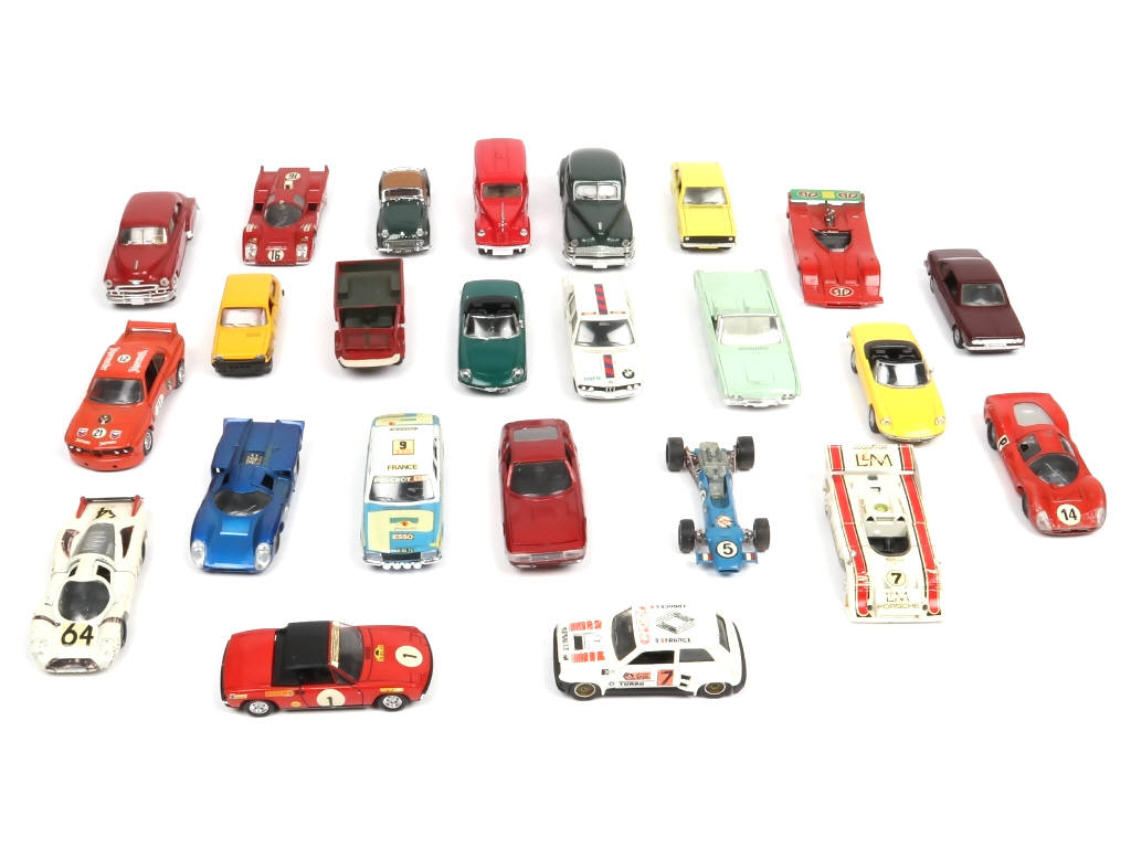 comprend notamment les modèles : FERRARI, LOLA, RENAULT, BMW, CHEVROLET & FORD - avec manques, parties cassées & quelques détails de peinture ajoutés