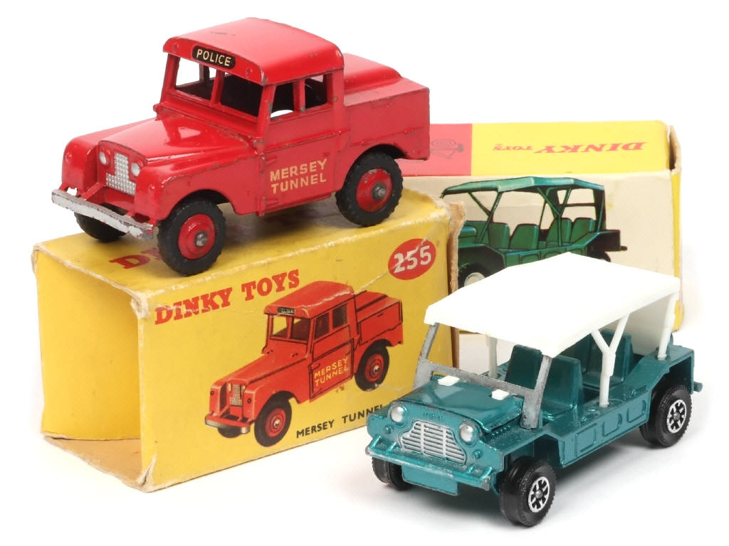 comprend : LAND ROVER MERSEY TUNNEL (état 'D'-'d') & AUSTIN MINI-MOKE (état 'C'-'c', avec manques & parties cassées)