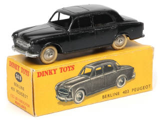 DINKY TOYS (FRANCE) 24B PEUGEOT 403 (version sans vitre & avec jantes convexes) noir