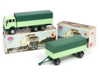 NACORAL (ESPAGNE) 207-208 MERCEDES 1919 S Plateau à ridelles bâché avec remorque bâchée 2 tons de vert
