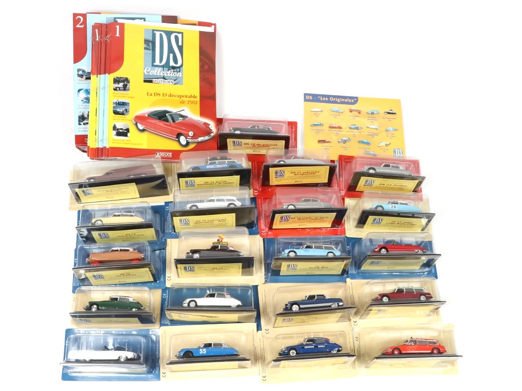 série DS COLLECTION CITROËN - du numéro 1 à 21 - comprend notamment les modèles : DS 19 TOUR DE CORSE, ID 20 BREAK AMBULANCE DE POMPIERS, ID FAMILIALE & DS 21 MAJESTY HENRI CHAPRON - on y joint 1 classeur, fascicules & une planche de 15 pin's DS "LES ORIGINALES"