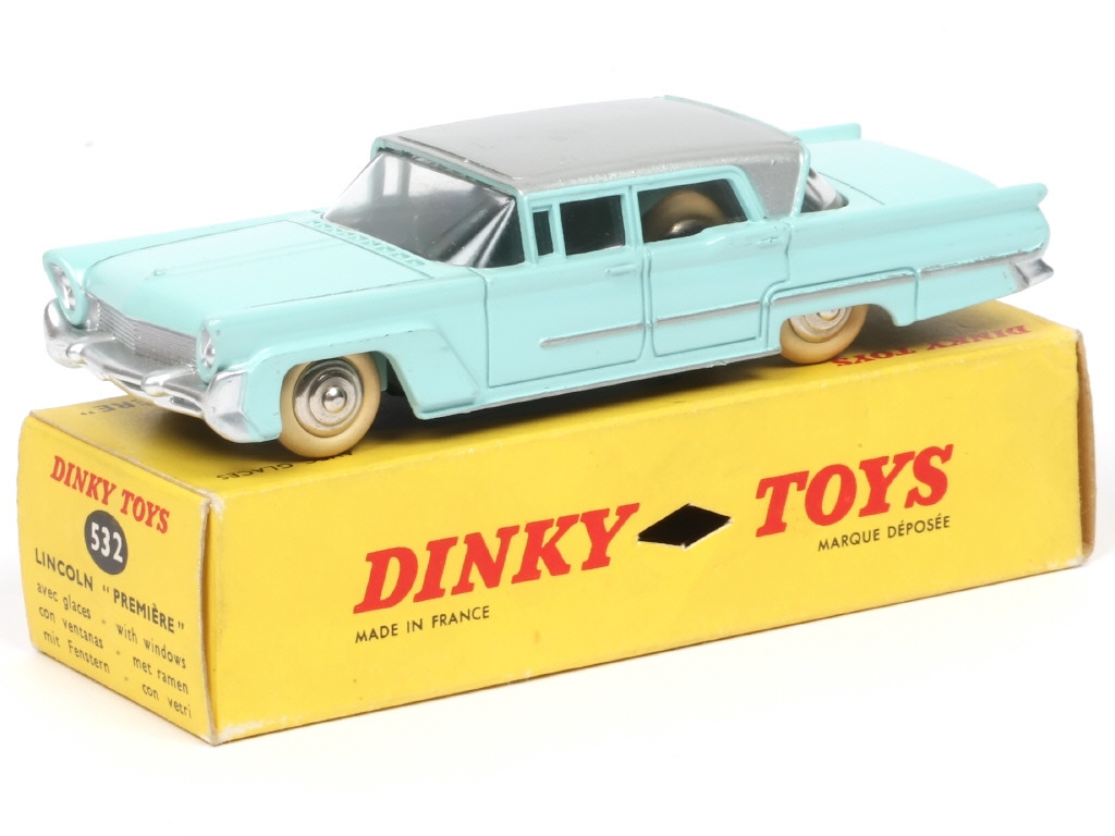 DINKY TOYS (FRANCE) 532 LINCOLN PREMIERE (version avec jantes convexes) bleu ciel, toit gris métal