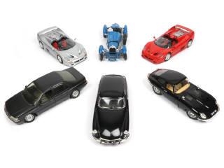 échelle 1/18ème - comprend les modèles : PEUGEOT, CITROEN, FERRARI, JAGUAR & BUGATTI - on y retrouve notamment les marques : SOLIDO & BBURAGO - avec petits manques & parties cassées