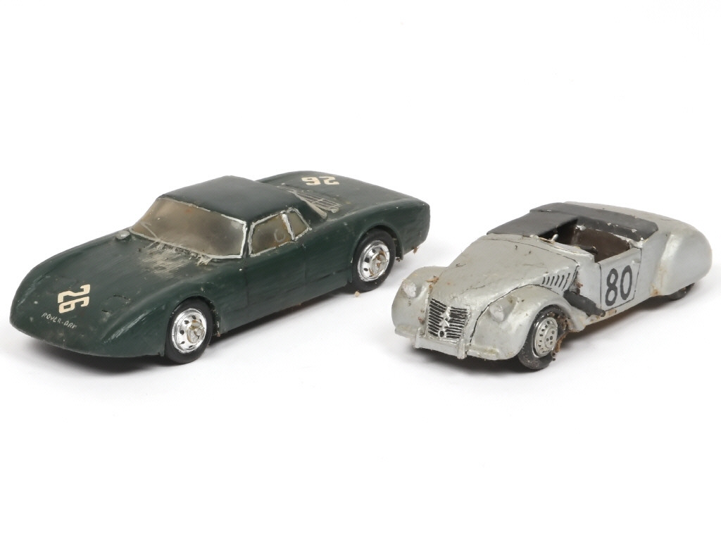 créations artisanales en bois - on y retrouve les marques : CITROËN (manque saute vent & cerclage de volant, un pneu coupé) & ROVER-BRM - papiers d'identification de planchers en grande partie manquants - carrosseries plus ou moins encrassées - vitrages opacifiés