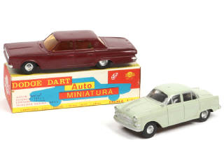 avec moteurs à friction à revoir - comprend : DODGE DART (carrosserie légèrement encrassée - boite en état 'b') & OPEL KAPITAN (quelques manques majeurs de peinture par endroits - importante oxydation sur le plancher) - pneus séchés