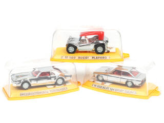 avec dépliants présentant les modèles de la marque - comprend : OLDSMOBILE TORONADO, BUGGI PLAYBOY & SEAT SPORT coupé - quelques parties fondues sur certains socles (réaction avec pneus)
