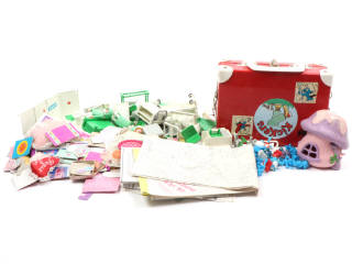 comprend notamment : PLAYMOBIL sur le thème de l'hôpital, valisette de marque PIPO (autocollants collés dessus), SCHTROUMPFS OMO & documentations BARBIE - avec manques & parties cassées