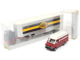 comprend : FIAT 130 NT semi-remorque fourgon 'UMBERTO PIACENZA RIMORCHI' & FIAT/IVECO fourgon 'QUATTRORUOTINE' (petite déformation d'origine sur l'avant de la carrosserie, sans autocollant de plaque minéralogique arrière)
