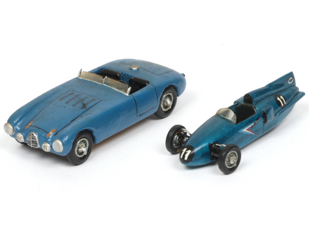 créations artisanales en bois - comprend : SIMCA GORDINI 1500 SPORT 1949/50 (création 1963) & RACER 500 3 roues 1960