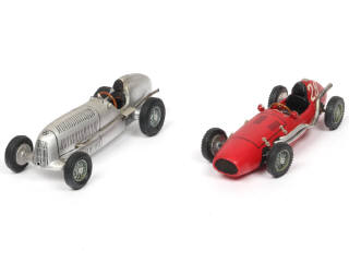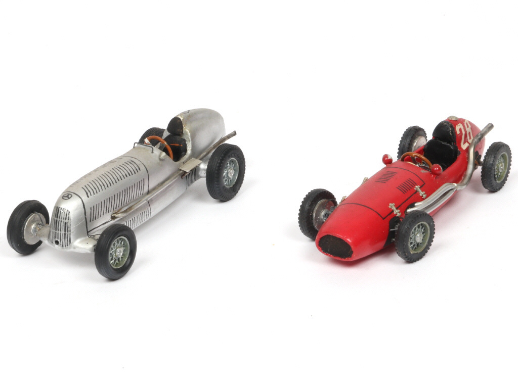 créations artisanales en bois - comprend : MERCEDES 25B 1925 & ARZANI VOLPINI 1954 (manque saute vent)