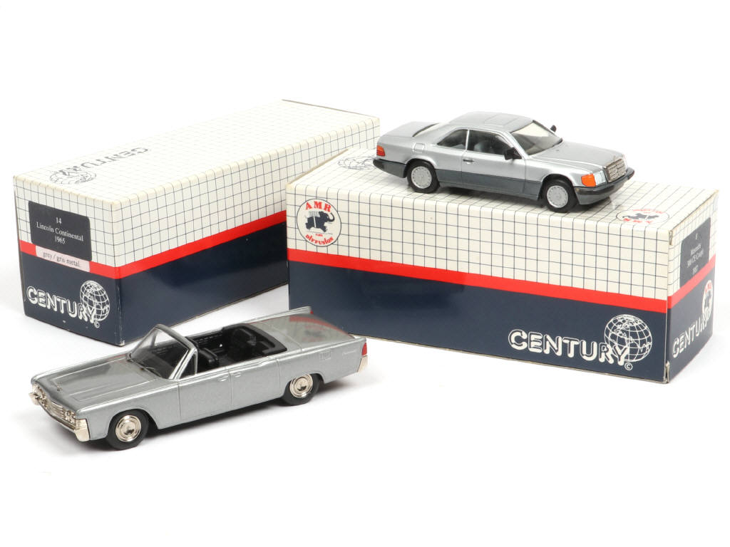comprend : MERCEDES 300 CE 1987 (boite avec marquage AMR) & LINCOLN CONTINENTAL cabriolet de 1965