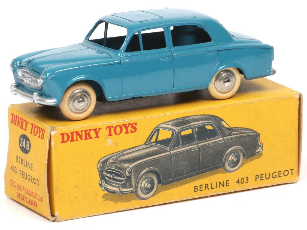 DINKY TOYS (FRANCE) 24B PEUGEOT 403 (version sans vitre & avec jantes convexes) bleu nattier