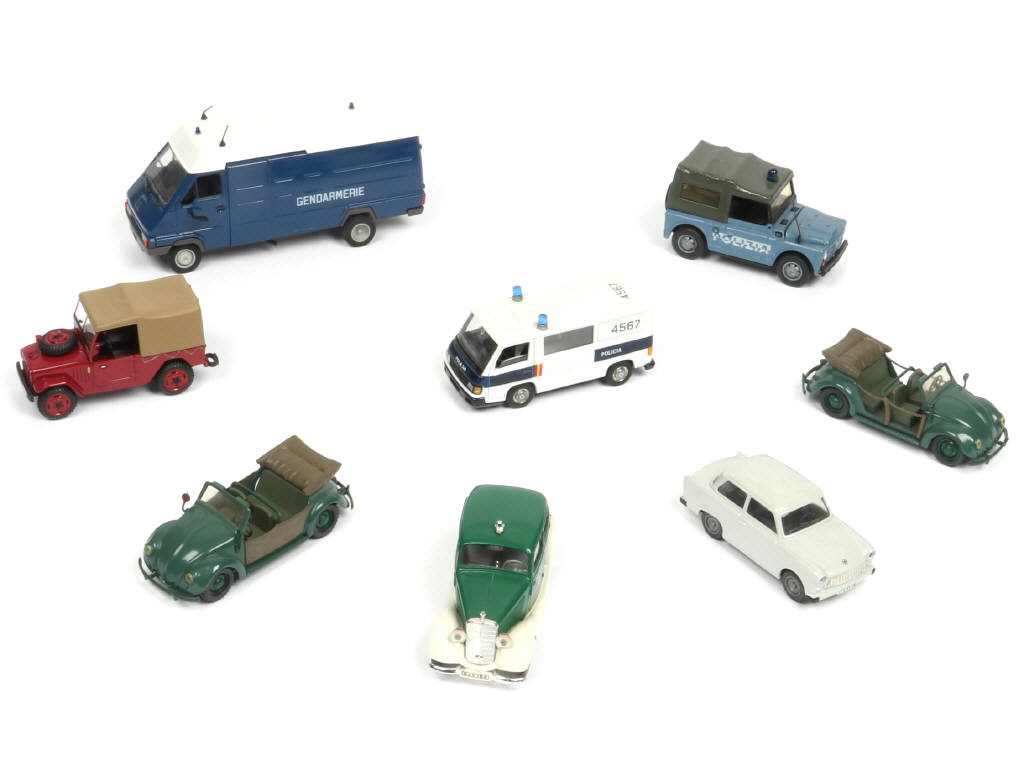 comprend notamment : TRABANT 601, MERCEDES 170 V, VOLKSWAGEN COCCINELLE cabriolet, RENAULT 'GENDARMERIE' & FIAT CAMPAGNOLA - on y retrouve les marques : VITESSES, DEA, PILEN, OLD CARS & ELIGOR/LBS