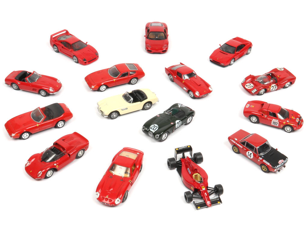 comprend notamment les modèles : FERRARI, LANCIA, JAGUAR & BMW - on y retrouve les marques :SOLIDO, RIO, DEL PRADO, MODEL BOX, HERPA & BRUMM - possibilité de petits accessoires manquants
