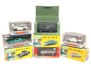 comprend notamment les modèles : FORD, TRIUMPH, ROVER, AUSTIN & HILLMAN - on y retrouve les marques : DINKY MATCHBOX & VANGUARD - un modèle sans fixation de socle - quelques boites en état 'c'