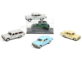 dont un kit monté - comprend notamment les modèles : VOLGA, MOSKVITH(dont une avec peinture de qualité médiocre - craquelures) & GAZ - on y retrouve les marques : SARATOV & DIP