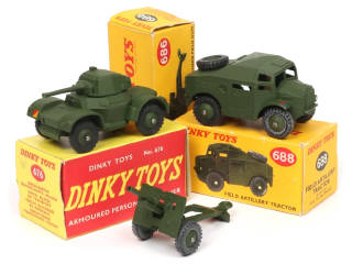 DINKY TOYS (GB) Ensemble de 2 véhicules militaires & un canon kaki