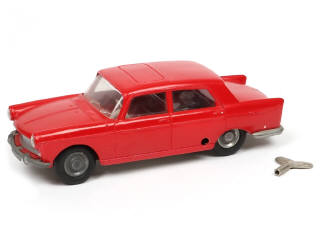 longueur 21 cm - moteur à clef (fonctionne) & direction - quelques parties ternies - quelques défauts dans la peinture par endroits (d'origine)