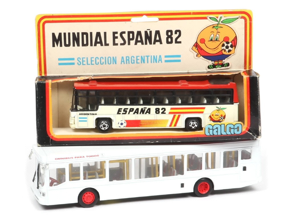 comprend : BUENOS AIRES CITY bus (un rétroviseur en partie cassé) & SINGLE DECK Coach 'ESPANA 82' (sélection ARGENTINE- boite en état 'd') - on y retrouve les marques : BUBY & GALGO