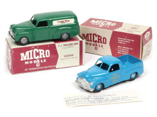 modèle en plastique - carrosserie légèrement poussièreuse - boite avec très légères traces de feutre - on y joint une FX HOLDEN UTILITY PRESS (New Zealand) référence MM503 (avec certificat - petites projections de peinture dorée)