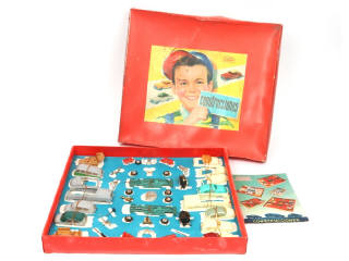 moteurs non testés - avec notice - dimensions du coffret : 47 x 41 cm - manque quelques petits éléments - contient différents éléments & accessoires permettant la réalisation de différents modèles de véhicules (jantes craquelées, quelques petites traces d'oxydation par endroits) - ensemble (légèrement encrassé) - présenté sur support cartonné (avec élastiques de maintien dont certains incomplets et/ou séchés - couvercle de boite plus ou moins déformé