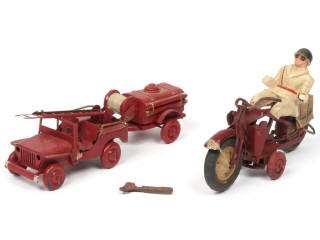 POLICHINELLE (FRANCE) JEEP WILLYS Pompiers avec échelle, dérouleur & remorque citerne rouge