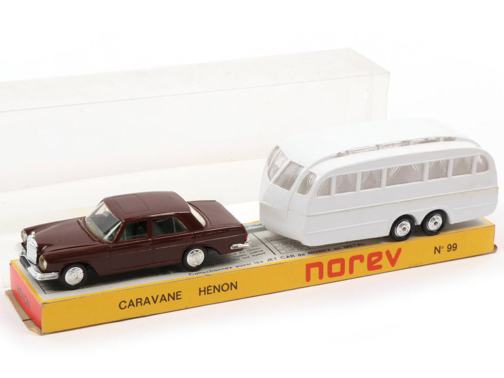 NOREV (FRANCE) 99 MERCEDES 250 SE avec caravane HENON marron & blanc