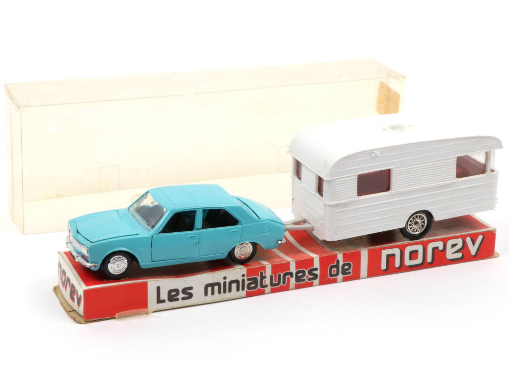 NOREV (FRANCE) 93 PEUGEOT 504 avec caravane PANORAMIC 14 bleu pâle & blanc
