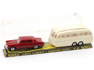 NOREV (FRANCE) 99 LANCIA FLAMINIA avec caravane HENON grenat & blanc