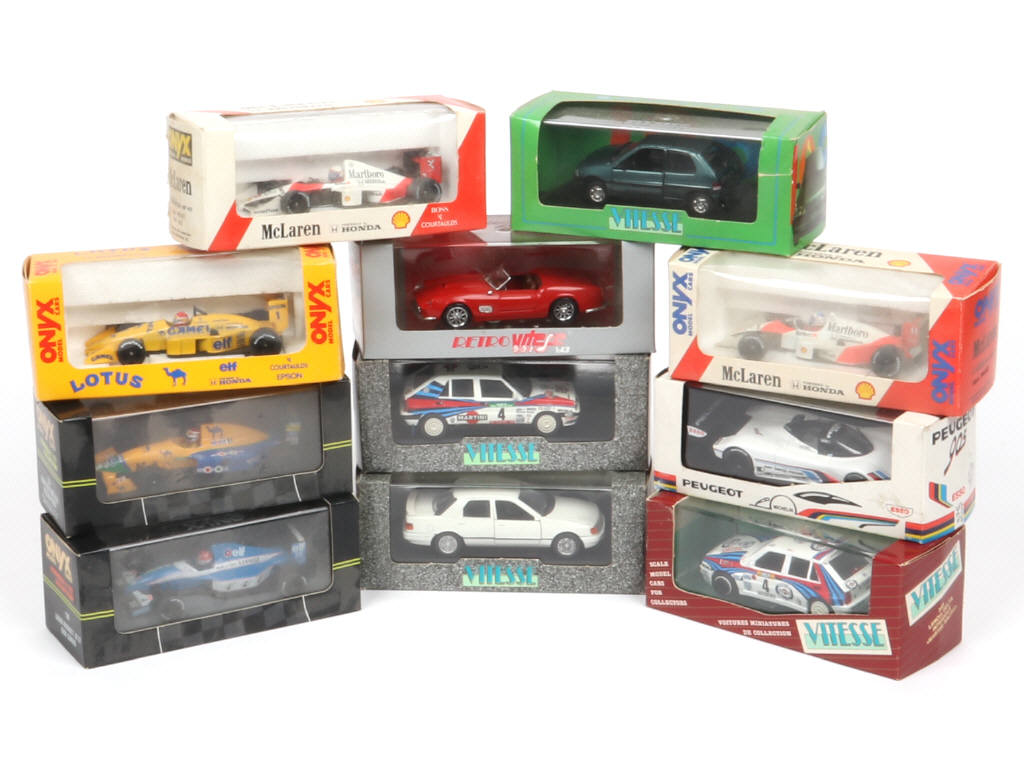 comprend notamment les modèles : Mc Laren, LOTUS, PEUGEOT & LIGIER - on y retrouve les marques : VITESSE & ONYX - boites légèrement poussièreuses