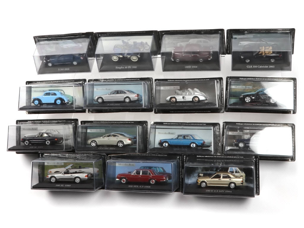 série "COLLECTION MERCEDES-BENZ" comprend notamment les modèles : 500 SL (1989), 300 SEL 6.3 (1968), 190 E 2.3 16V (1984), CLS 500 (2004) & 170H (1938)